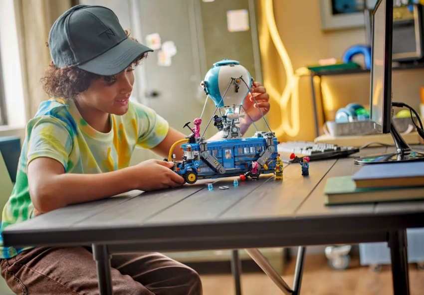 Bus bojowy to ikona Fortnite — start większości przygód i niekończących się historii do opowiedzenia. W wersji LEGO Fortnite 77073 dostajesz imponującą bryłę, która robi wrażenie zarówno w ruchu, jak i na ekspozycji. To typowy „centerpiece”: można wokół niego budować strefy lądowania, bazę ekip albo małe miasteczko z klocków. Model zachęca do scenariuszy „w stylu gry”: planowanie skoku, przygotowanie sprzętu, szybkie roszady drużyny. Świetnie sprawdza się jako prezent dla dzieci, które lubią od razu wejść w zabawę — bus po złożeniu staje się sercem domowej mapy. W duecie z mniejszymi zestawami z tej listy dostajesz pełny „loop” rozgrywki: start, eksploracja, starcie, odpoczynek. Jako pomysł pod choinkę to wybór bezpieczny i efektowny: rozpoznawalny motyw, solidna konstrukcja, masa miejsca na miniopowieści. Jeśli chcesz jednym pudełkiem wywołać świąteczne „wow”, Bus bojowy spełnia tę rolę znakomicie.