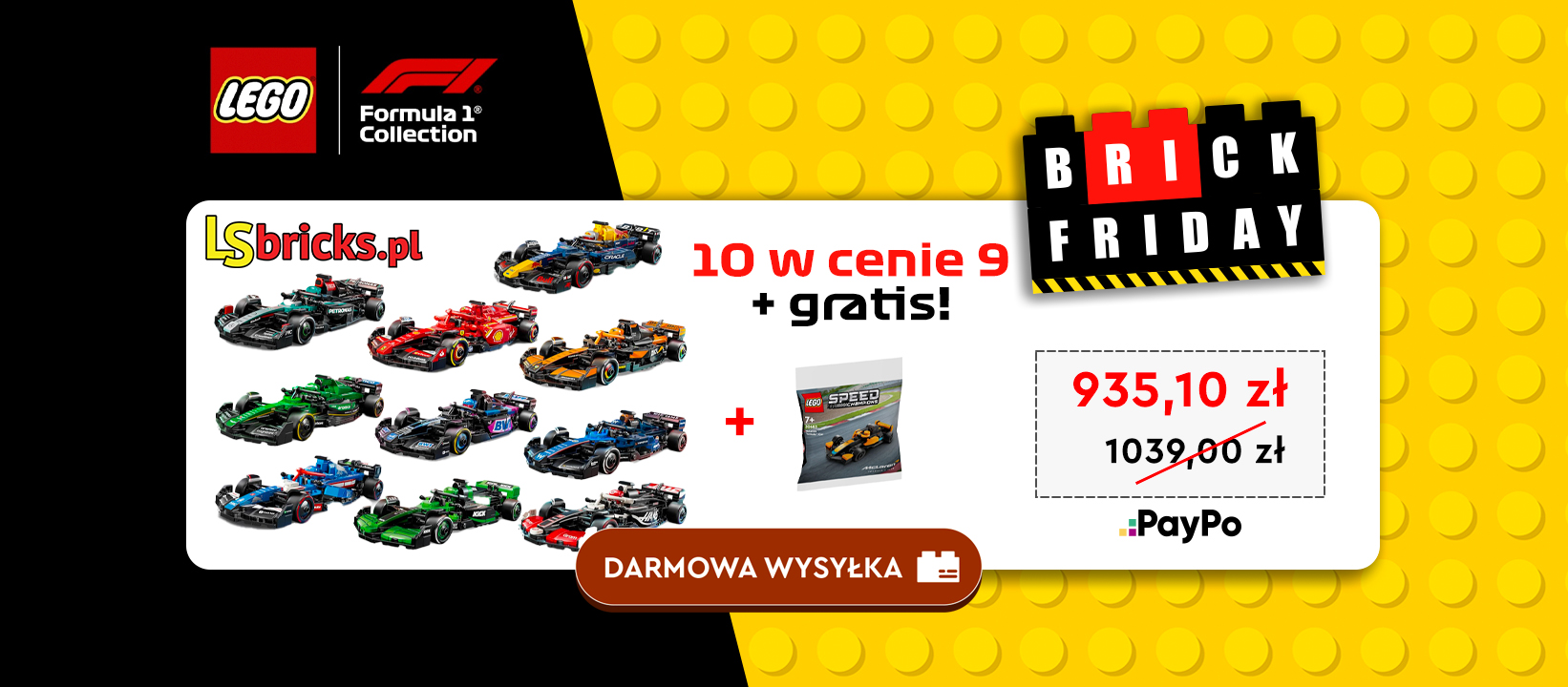 Przygotowaliśmy dla Ciebie specjalny pakiet składający się z 10 zestawów LEGO Speed Champions, w którym płacisz tylko za 9, a dziesiąty otrzymujesz GRATIS! To doskonała okazja, by stworzyć własny garaż pełen legendarnych bolidów F1.