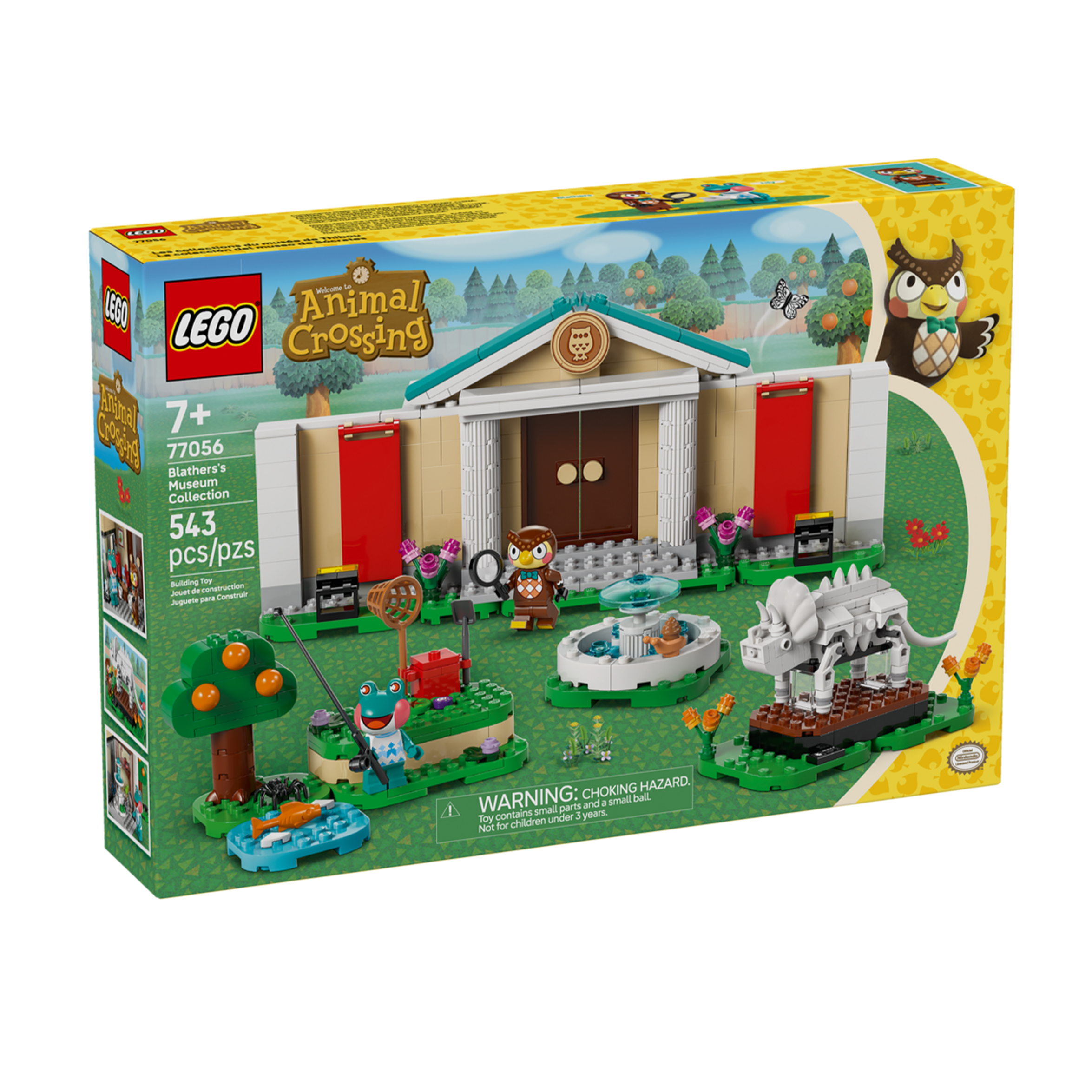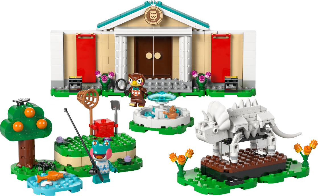 Ten zestaw LEGO® obejmuje muzeum z serii gier wideo Animal Crossing. Dzieci mogą ustawić swoje znaleziska na ekspozycjach, użyć łopaty, aby wykopać brakującą kość triceratopsa, złapać ryby do akwarium oraz motyle i owady za pomocą siatki. Regulowane ściany z zawiasami i elementy, które można przestawiać, sprawiają, że zestaw można przebudowywać, poszerzając możliwości zabawy. Zestaw zawiera również fontannę i kawiarnię Roost, gdzie dzieci mogą odpocząć w towarzystwie Blathersa i Lily, zanim wyruszą na kolejną przygodę w świecie przyrody. Młodzi budowniczowie mogą również cieszyć się cyfrową zabawą w budowanie dzięki aplikacji LEGO Builder, w której mogą powiększać i obracać modele w 3D. Zestaw zawiera 543 elementy.