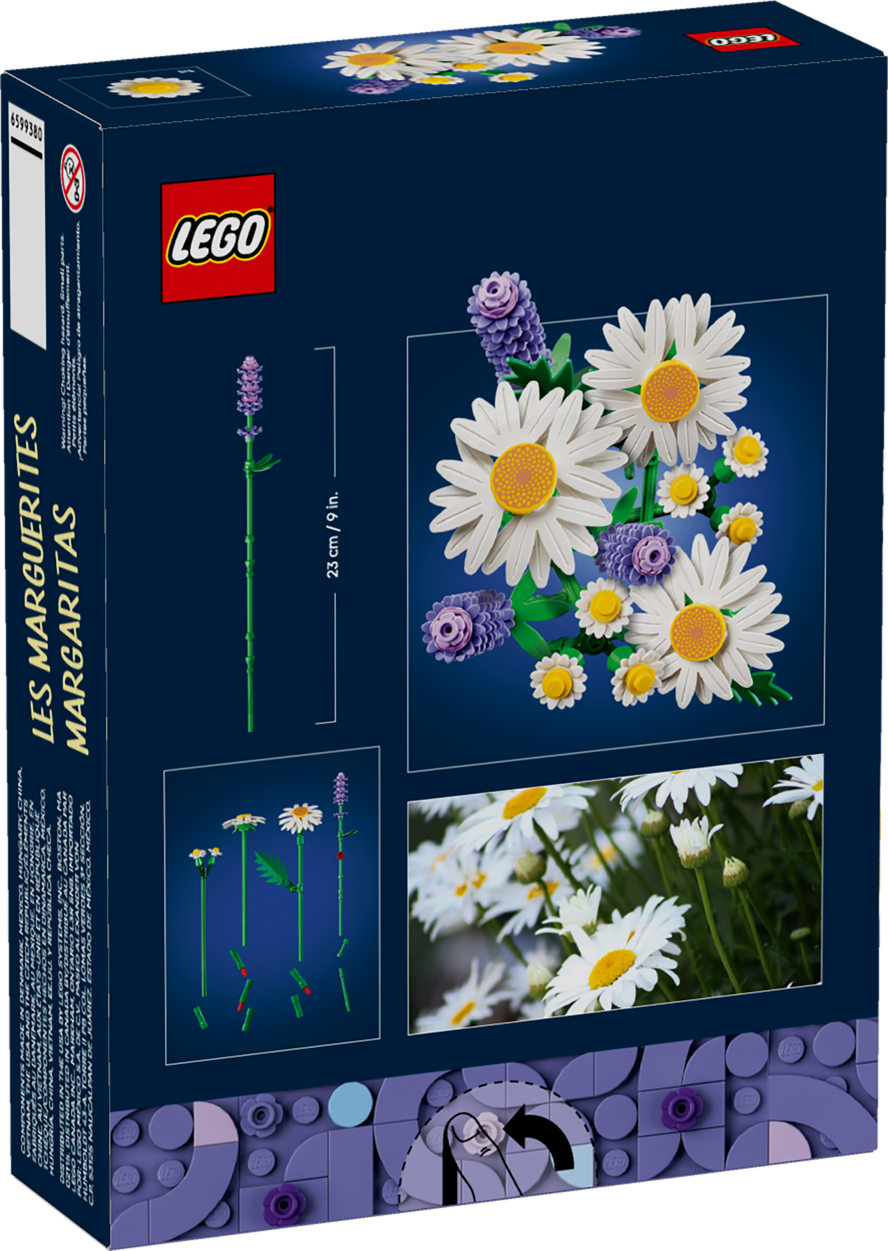 W pudełku jest 133 elementy, z których złożysz trzy duże stokrotki, dwie łodygi małych stokrotek i trzy gałązki lawendy. Do tego intensywnie zielone łodygi, które ładnie podkreślają kolory płatków. Budowa jest przyjemna i czytelna, a efekt wygląda bardzo realistycznie. Elementy łączą się pewnie, więc bukiet trzyma formę. Gotowy model zmieści się w większości wazonów i słoików. Możesz też położyć go luzem na półce. Taki zestaw daje radość tworzenia i ładną ozdobę w jednym.