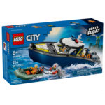 Wewnątrz pudełka znajdziesz wszystko, co niezbędne do zbudowania pełnowymiarowej sceny akcji nad wodą. Od łodzi policyjnej, po ponton złodziejki, każdy element jest szczegółowo zaprojektowany dla maksymalnej zabawy. Zestaw obejmuje minifigurki dwóch policjantów, złodziejki oraz figurkę rekina. Maluchy mogą odgrywać realistyczne scenki, ścigając złodziejkę i łapiąc ją na gorącym uczynku.