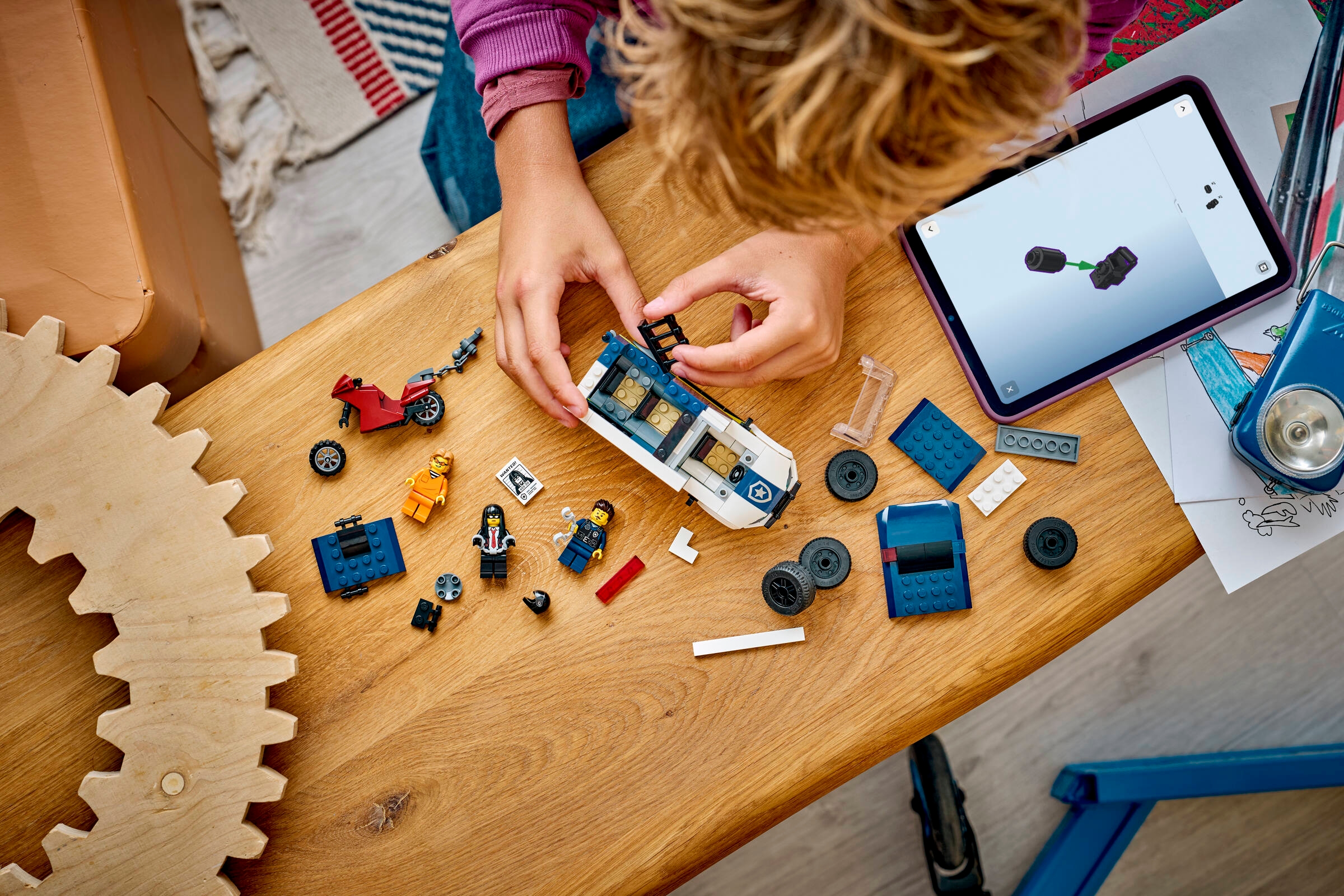 Ciężarówka robi wrażenie. Kabina jest szczegółowa, a koła gładko toczą się po podłodze. Cela ma drzwi, które da się wybić łańcuchem z motocykla. To idealny punkt wyjścia do zabawy w zasadzkę, pościg i konwój. Dzieci wymyślą plan ucieczki, a potem sprytne przechwycenie. Proste elementy ułatwiają budowanie, a bryły są solidne. Zestaw pozwala tworzyć krótkie sceny i długie historie. Każda runda zabawy może wyglądać inaczej. Z LEGO łatwo mieszać role i rekwizyty, więc akcja nigdy się nie kończy.