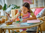 Dzieci mogą budować, bawić się i ustawiać na półce trzy plażowe modele z zestawu 3 w 1 LEGO® Creator Tropikalne ukulele (31156). To także świetny pomysł na prezent dla chłopców i dziewczynek w wieku od ośmiu lat. Obejmuje on ukulele na podstawce w kształcie plaży z dwoma kolorowymi kwiatami i trawą. Instrument można odczepić od podstawki, a cztery plastikowe struny wibrują, gdy się za nie pociągnie.