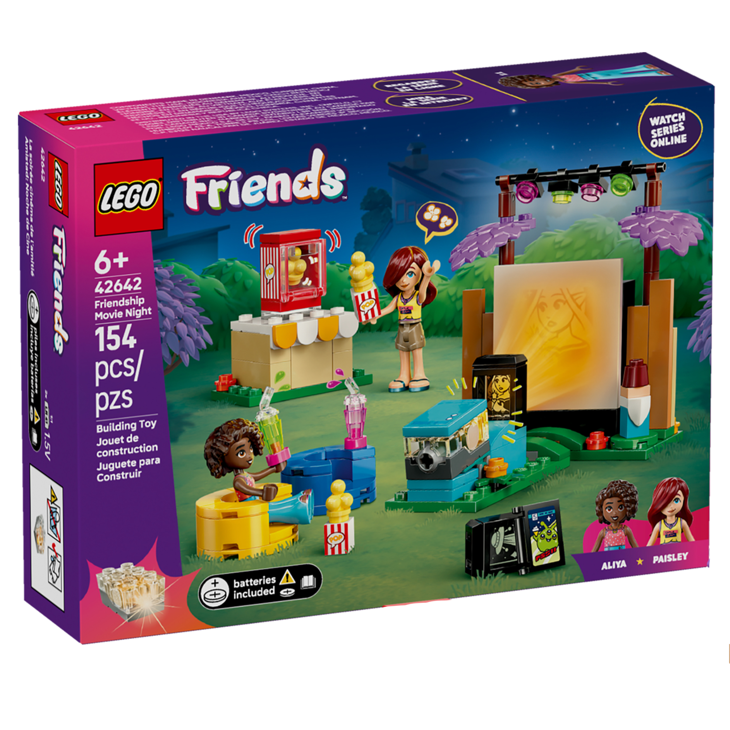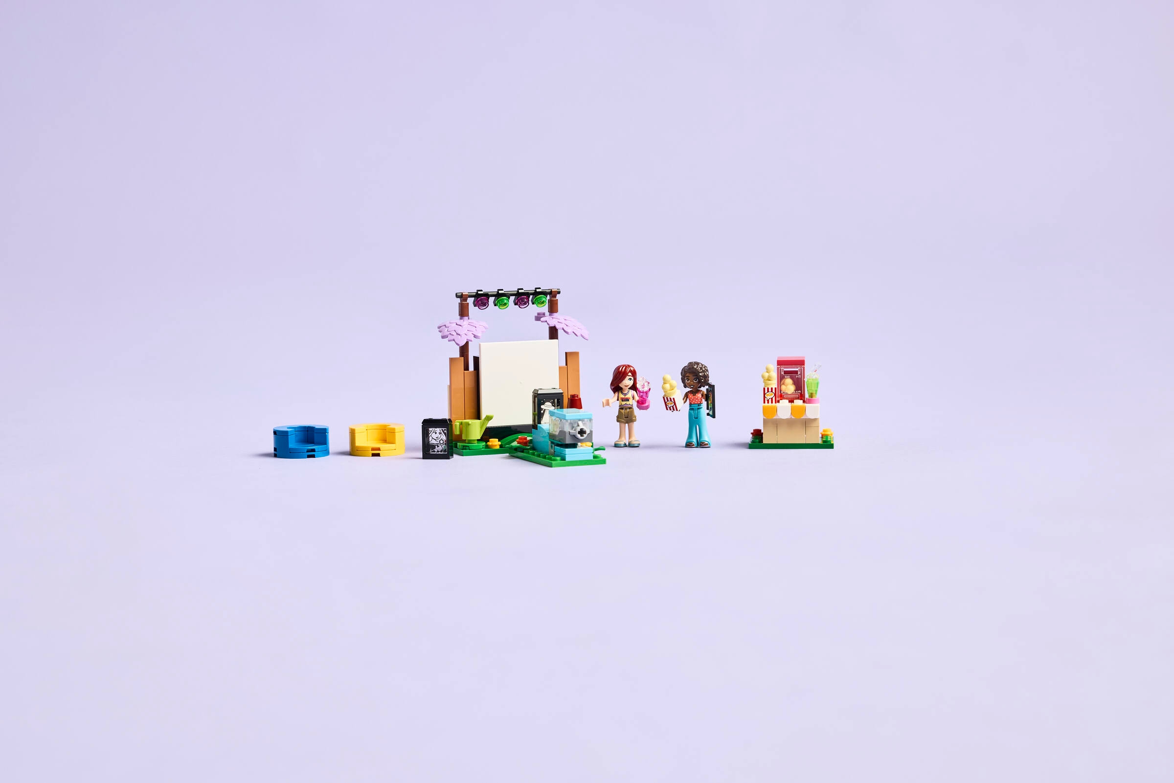 Pod hasłem „Światła, kamera, przyjaźń!” dzieci mogą wcielić się w role Paisley i Aliyi, tworzących niezapomniany maraton filmowy w ogrodzie. Wystarczy wsunąć slajd filmowy do projektora i nacisnąć świecący klocek, aby obraz pojawił się na ekranie. W zestawie znajdziesz również maszynę do robienia popcornu z dźwignią pozwalającą „popękać” popcorn. Wszystkie te elementy pozwalają na stworzenie wyjątkowej, kinowej atmosfery.