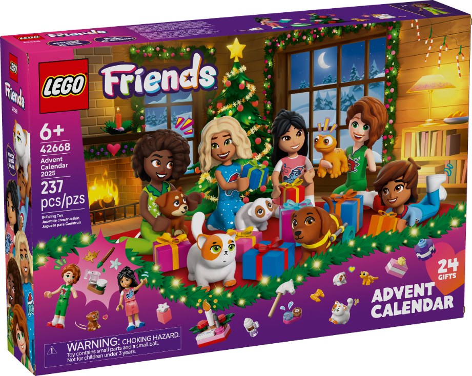 Zainspiruj świąteczny nastrój i przytulne chwile dla dziewczynek i chłopców w wieku od 6 lat, gdy dzieci będą codziennie otwierać drzwiczki kalendarza adwentowego LEGO® Friends 2025 (42668). Zestaw zawiera 5 minilaleczek: Aliya, Autumn, Liann, Nova i Leo, a także 5 zwierzątek LEGO: 2 psy, świnkę morską, gekona i figurkę kota.