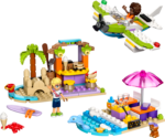 Zestaw LEGO Friends 42672 oferuje wszystko, czego maluchy potrzebują, aby stworzyć fascynujący świat plażowych przygód. Wewnątrz znajdują się elementy do budowy wodnosamolotu z obracającym się śmigłem, relaksacyjnej strefy z deską surfingową oraz plażowej kawiarni. Każda sceneria może zostać przekształcona w motorówkę, strefę wypoczynkową i pizzerię. Dołączone są również dwie minilaleczki oraz figurki psa i delfina, co dodaje zabawie realizmu i emocji.