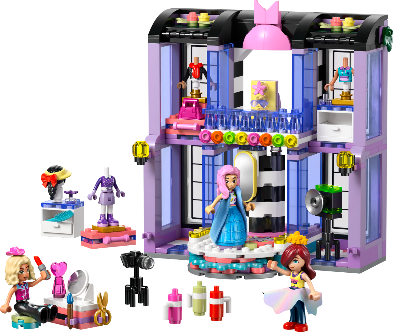 Zestaw zawiera 410 elementów i instrukcję krok po kroku. Budowanie nie wymaga doświadczenia. Klocki pasują do innych produktów LEGO, więc łatwo rozbudujesz scenę. Model nadaje się do zabawy i do ekspozycji na półce. Polecany dla dziewczynek i chłopców od 7 lat. Aplikacja LEGO Builder prowadzi przez każdy etap. Dziecko widzi model w 3D i szybko sprawdza, co już zbudowało. To wygodne wsparcie dla małych rąk i wielkich planów. Idealny pomysł na prezent dla chłopaka lub dziewczyny, którzy kochają modę.