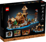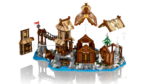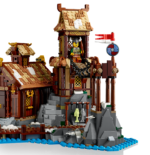 LEGO Ideas Wioska Wikingów obejmuje trzy fascynujące budowle. Zobacz, jak realistycznie została oddana kuźnia z funkcją płomieni. Przekonaj się, jak pięknie zdobią dom jarla detale, takie jak wspaniale wyrzeźbione tarcze z symbolami kruków i wilków Odyna. Wieża strażnicza zachwyca kunsztownymi detalami i pozwala snuć historie o bohaterskich obrońcach wioski.