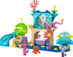 - Zabawka do budowania i zabawy dla dzieci — zestaw oferuje wiele detali do odkrycia, w tym muszle, rośliny, stworzenia morskie, zjeżdżalnię, wielką bańkę, w której postacie mogą „pływać”, oraz koralowiec odsłaniający skrzynię ze skarbem
