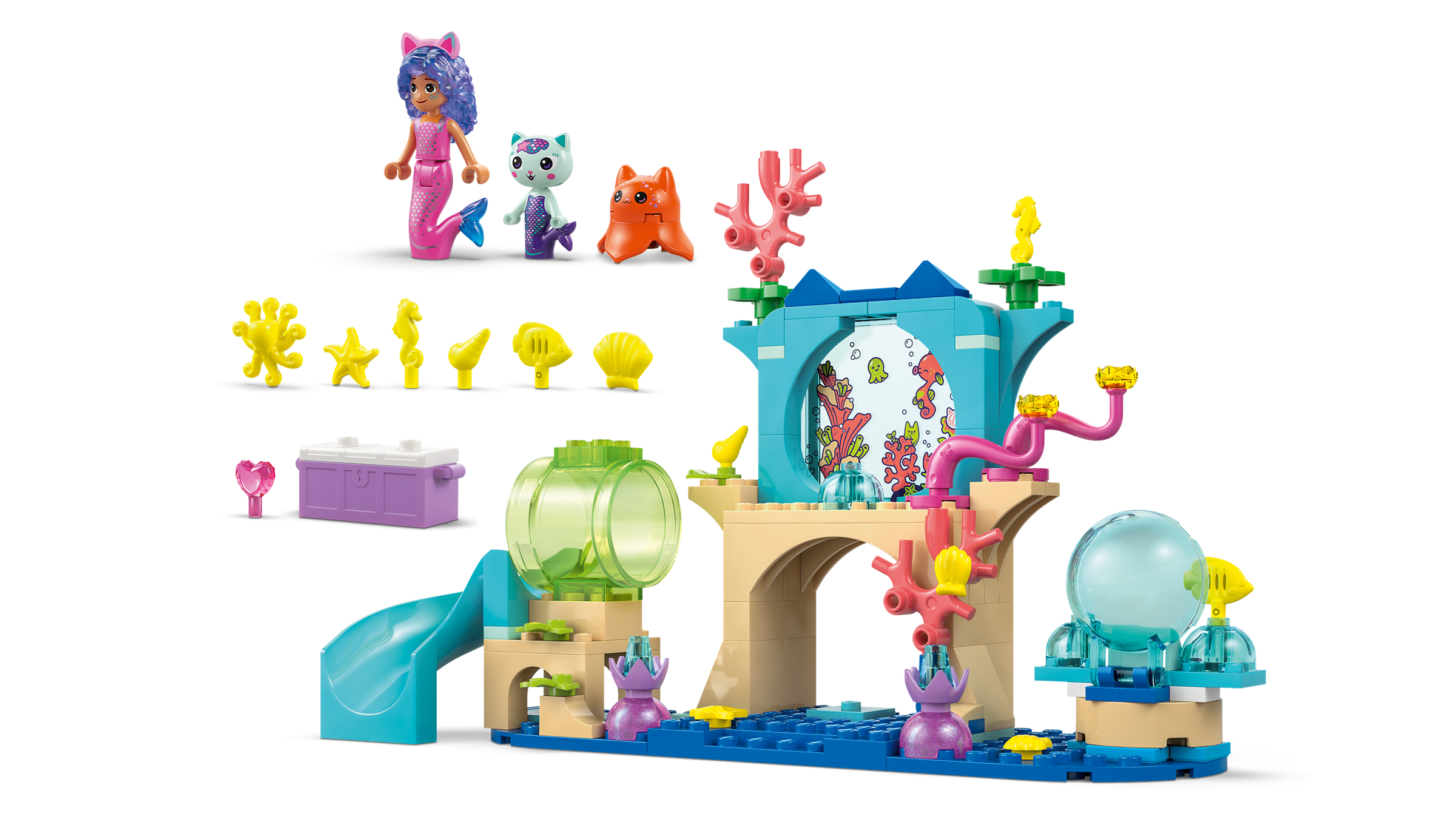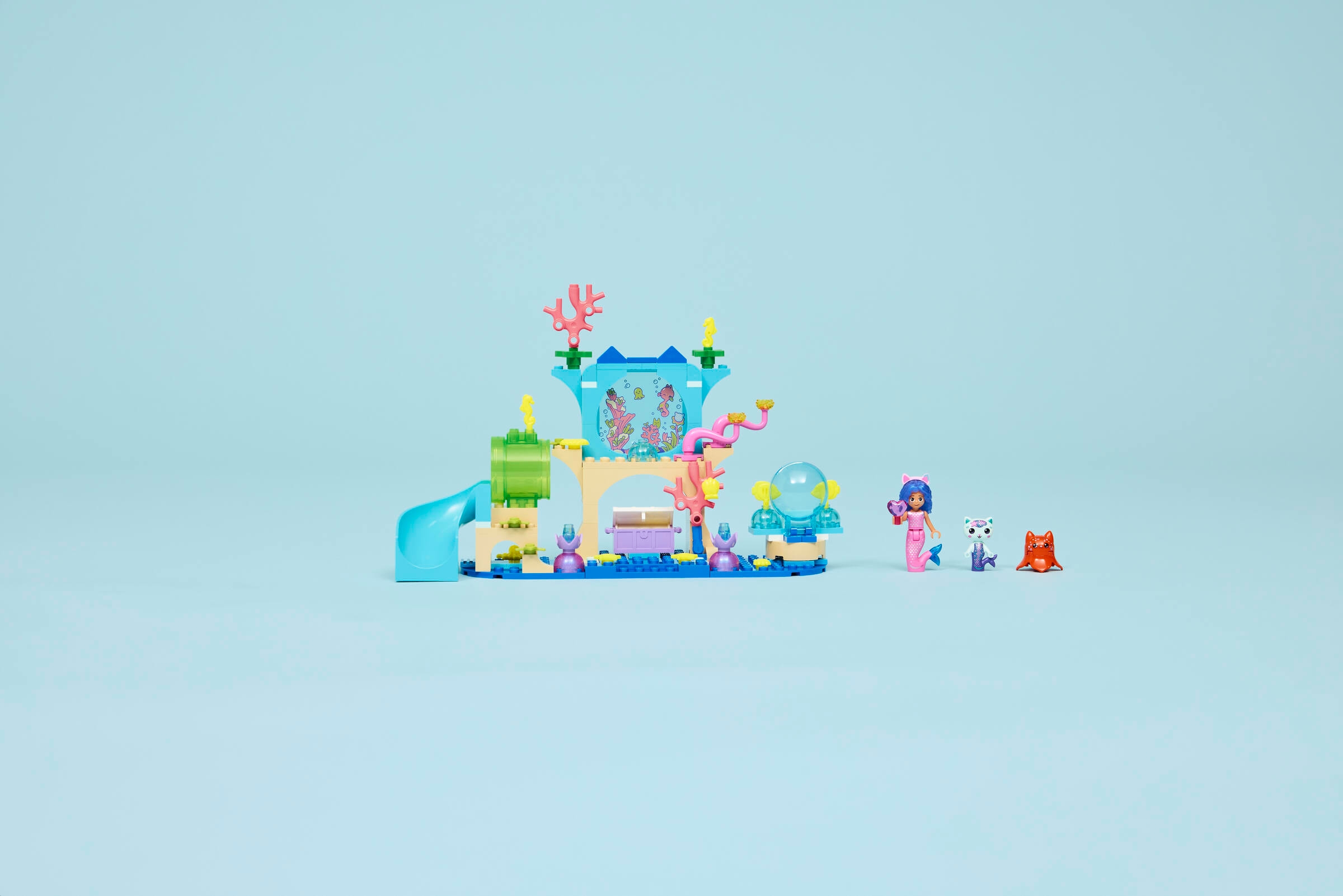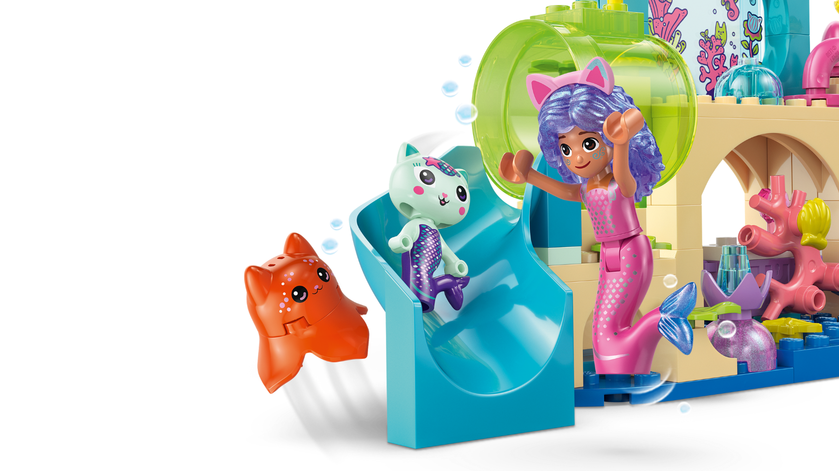 - Zestaw LEGO® Koci domek Gabi — dzieci mogą odtwarzać historie z Gabi i odgrywać własne podwodne przygody