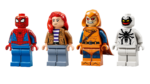 - Minifigurki LEGO® ǀ Marvel — zestaw do zbudowania zawiera Hobgoblina na szybowcu z bombami dyniowymi, pajęczyny Spider-Mana i Anti-Venoma oraz Mary Jane z dużym, ruchomym robopająkiem