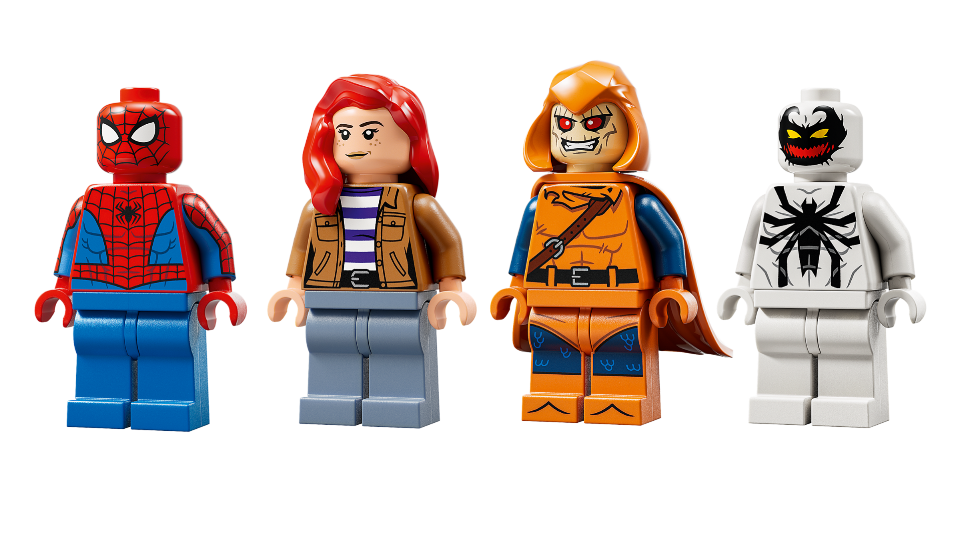 - Minifigurki LEGO® ǀ Marvel — zestaw do zbudowania zawiera Hobgoblina na szybowcu z bombami dyniowymi, pajęczyny Spider-Mana i Anti-Venoma oraz Mary Jane z dużym, ruchomym robopająkiem