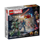 Przygotuj się na epicką konfrontację z zestawem Iron Man i War Machine kontra drony Hammera. To dynamiczna scena prosto z filmy Iron Man 2 stworzona z myślą o fanach Marvela. Minifigurki Iron Mana i War Machine wyposażone są w laserowe blastery, a ich zadaniem jest pokonanie dwóch zwinnych dronów Hammera.