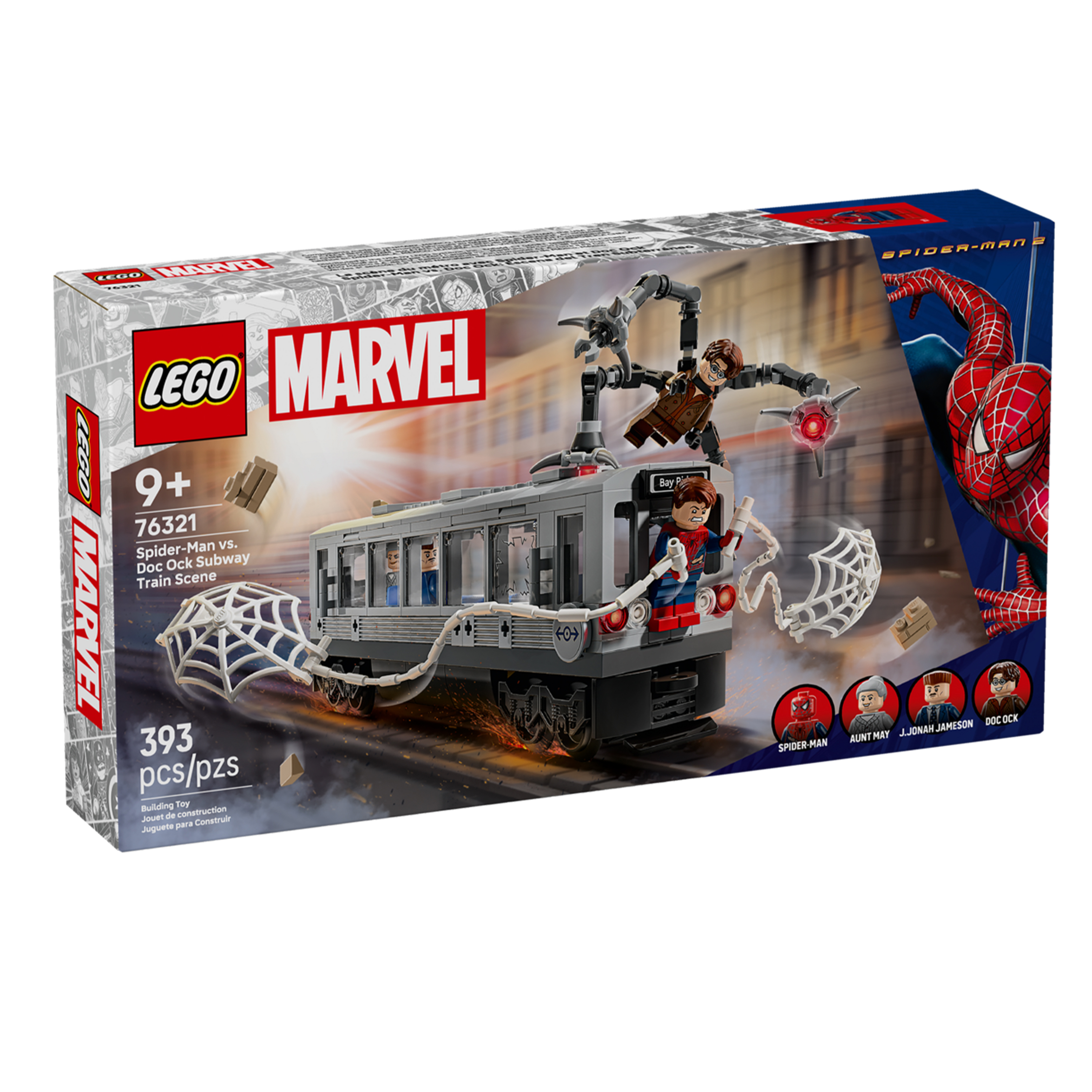 - Minifigurki: Spider-Man, Doc Ock, J. Jonah Jameson, ciocia May