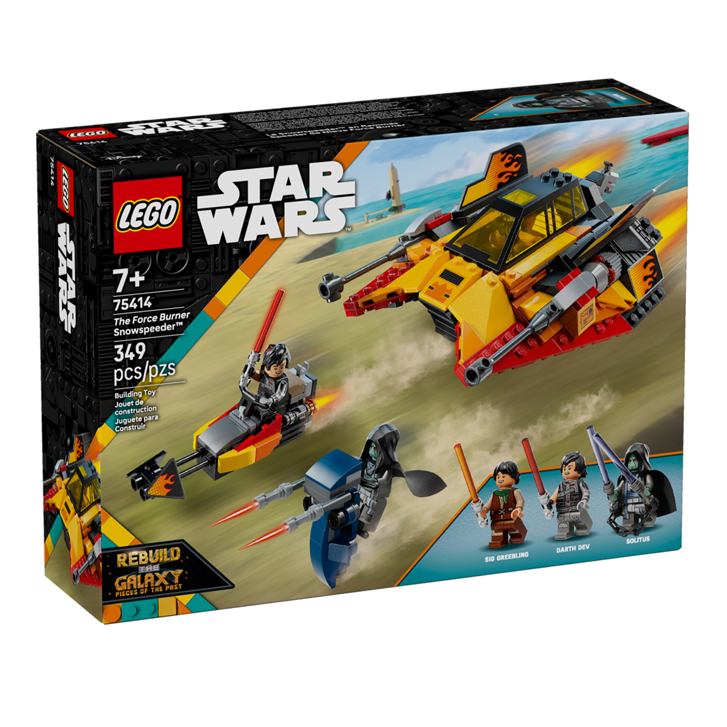 W zestawie znajdziesz pierwsze w historii minifigurki LEGO Star Wars z postaciami takimi jak Sig Greebling, Darth Dev oraz Solitus. Każdy z bohaterów posiada miecz świetlny, a Solitus wyróżnia się podwójnym mieczem świetlnym z łańcuchem. Platforma STAP, dołączona do zestawu, pozwala na odgrywanie epickich bitew, dzięki czemu każda chwila z LEGO Star Wars 75414 zamienia się w przygodę pełną zwrotów akcji.