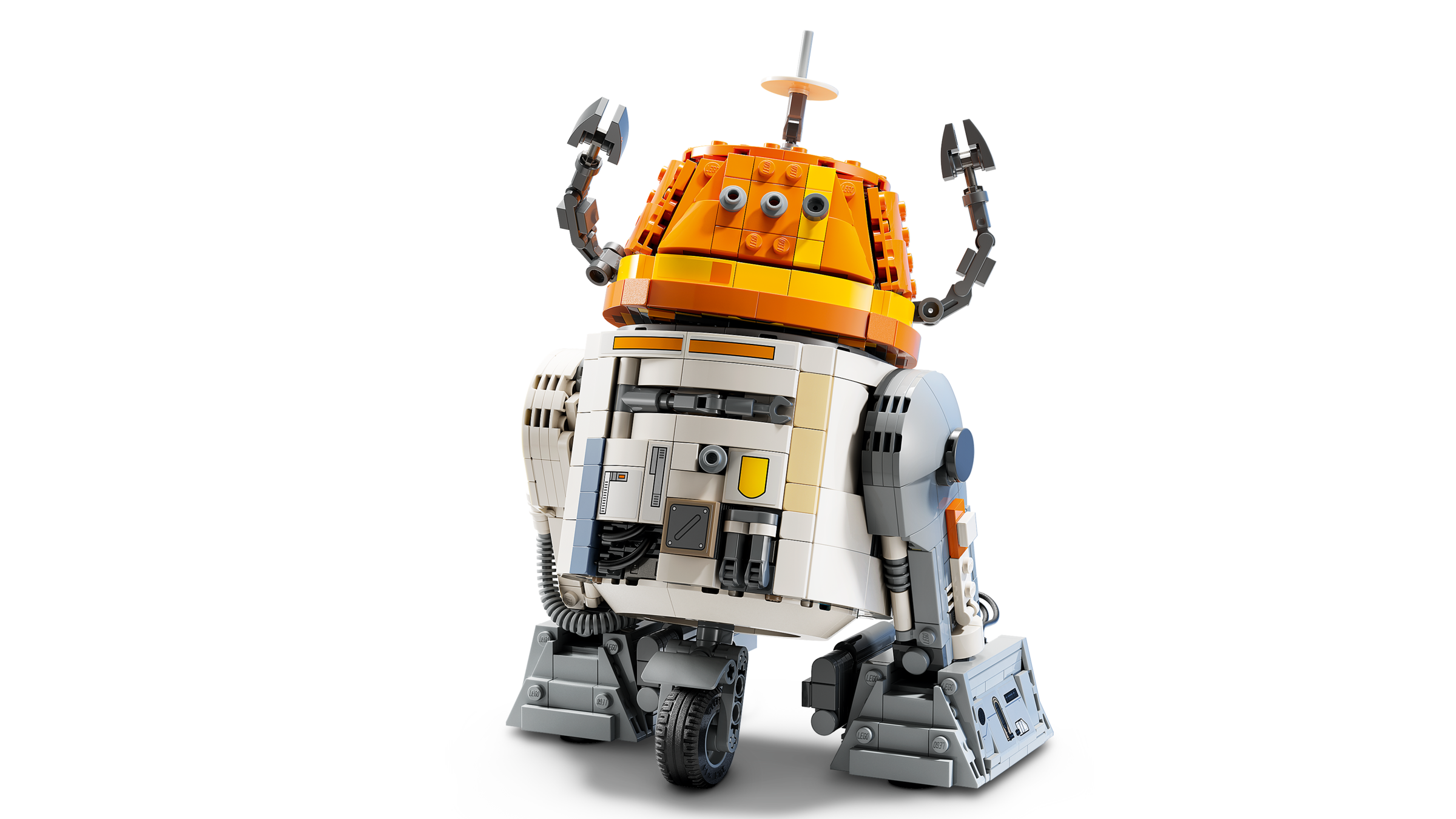 - Zestaw do zbudowania i ozdoby — figurka do zbudowania zawiera tabliczkę z informacjami na podstawce i miejsce na odczepianą standardową figurkę droida LEGO® Choppera (C1-10P)