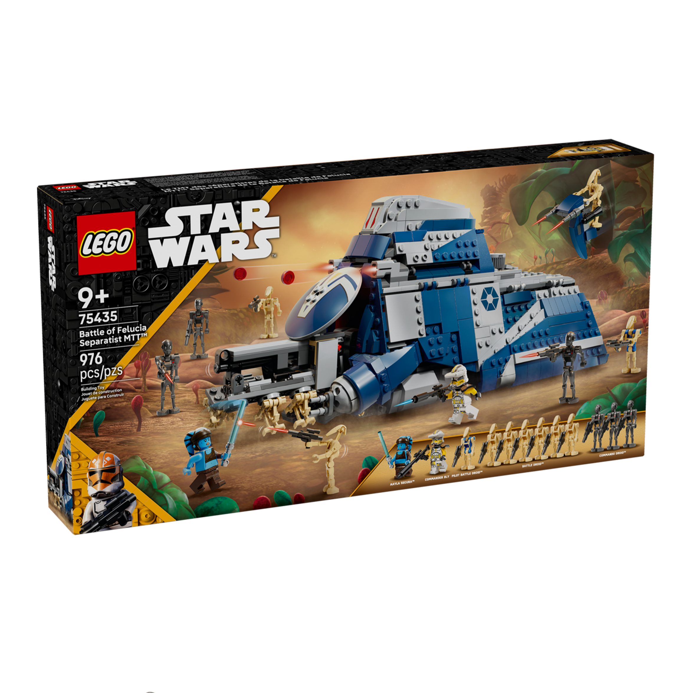 Dzięki temu zestawowi Transporter MTT™ Separatystów z bitwy o Felucję (75435) chłopcy, dziewczynki i fani w wieku od dziewięciu lat mogą przeżyć pełne akcji sceny z serialu Gwiezdne Wojny: Wojny Klonów. Ten pojazd z Gwiezdnych Wojen do zbudowania ma wiele realistycznych detali, które inspirują do kreatywnej zabawy, w tym stanowiska dla droidów, które wysuwają się przez przedni właz po przekręceniu pokrętła. MTT ma również składane panele boczne, aby ułatwić dostęp do szczegółowego wnętrza, kokpit pilota, śmigacz STAP schowany w tylnym przedziale, dwa miotacze klocków i ukryte koła, aby płynnie poruszać się po płaskich powierzchniach. W przerwach od zabawy model będzie stanowił wspaniałą ozdobę.
