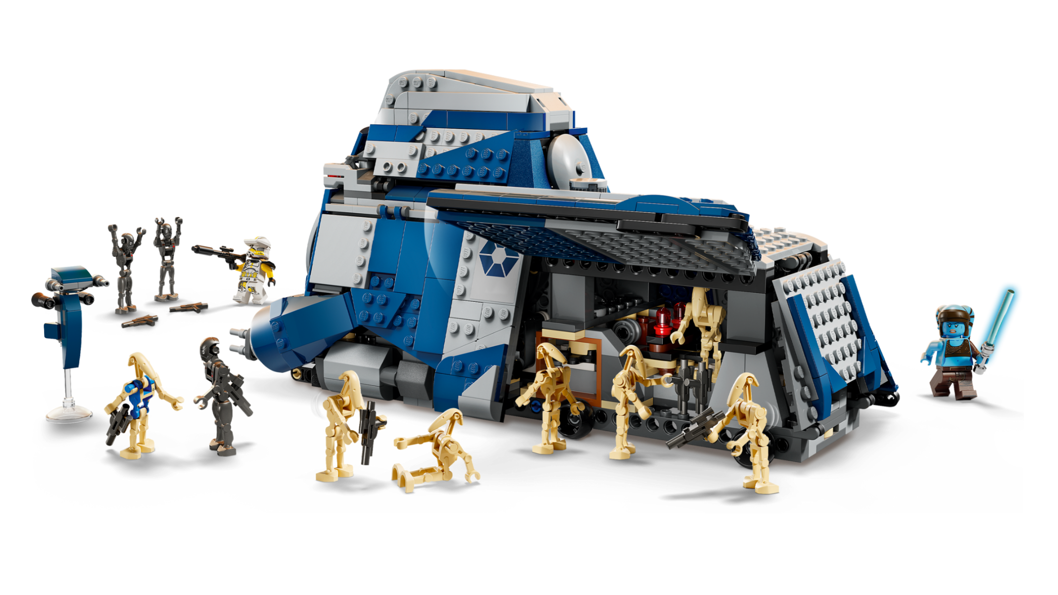 • Realistyczne detale — przekręć pokrętło na górze MTT, aby aktywować stanowiska dla droidów, wypychając je z przedniego włazu, a następnie odczep droidy bojowe