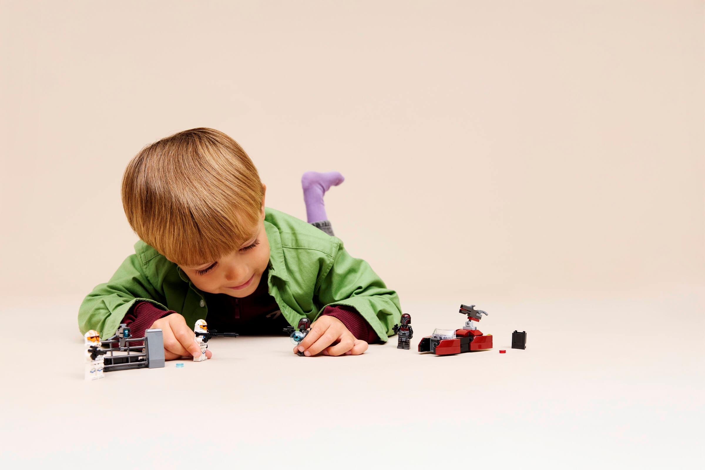 Zestaw składa się ze 116 elementów, więc budowa jest szybka i przyjemna. Instrukcje znajdziesz w aplikacji LEGO Builder. Możesz obracać model w 3D, powiększać widok i śledzić postępy. To duże wsparcie dla młodszych konstruktorów. Po złożeniu od razu zaczyna się zabawa. Śmigacz jest zwinny, a barykada stabilna. Minifigurki mają blastery i akcesoria. Zestaw dobrze łączy się z innymi kompletami bitewnymi. Rozszerzysz armię, zwiększysz pole walki i stworzysz własną Mandalorę. Części pasują do innych klocków LEGO.