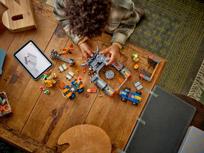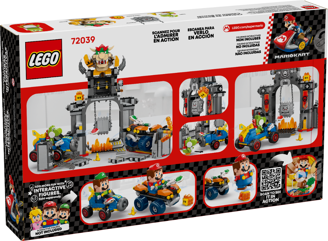 - Zestaw z torem wyścigowym LEGO® Super Mario™ — wystrzel pociski z quada i gokarta Mach 8, ścigaj się dookoła zamku (lub przez jego składane ściany!), unikaj wirującego Fire Bara i nie tylko
